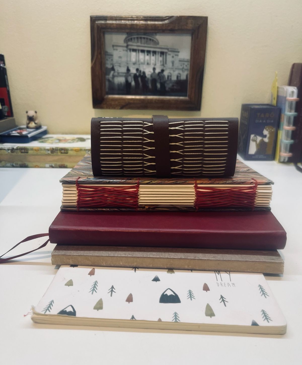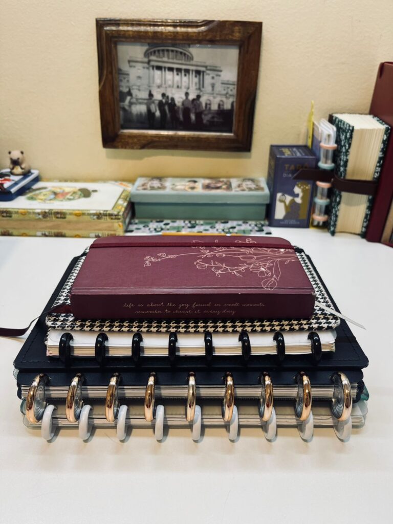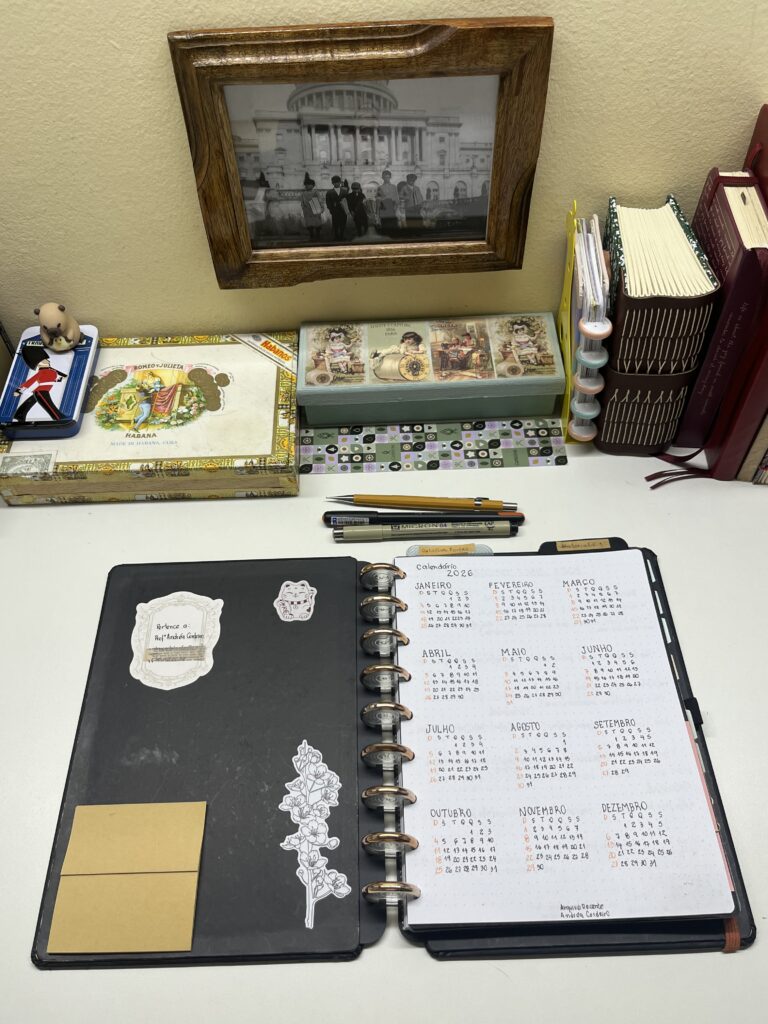 Em compensação eu mantive um diário, ou melhor, vários diários físicos no período: um para retomar a escrita das Páginas Matinais; um para registrar meus sonhos (esse eu recomendo demais para quem quer se conhecer mesmo); o diário do tarô que mantenho desde 2021 aonde registro as tiragens semanais que faço para mim, anoto estudos das cartas e também faço a prévia das análises de cartas que tiro para outras pessoas; e durante as 12 Noites Santas eu inaugurei o meu caderno do ano de 2026 no estilo commonplace book (ou livro de lugares-comuns) que uso para registrar as aprendizagens, as coisas importantes e desimportantes da vida, planos, desenhos, ideias…