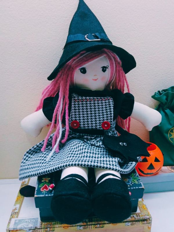 E já que era pra brincar, convidei para uma festa de Halloween. Fiz bolsinha de morcego (que vira pochete), chapéu, sapatos de fivela. A ideia agora é ir renovando o visual com a passagem do ano.